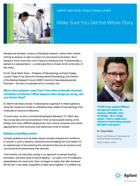 DownloadKing’s College London replaces a mix of notebooks and spreadsheets with Agilent SLIMS to bring together different management systems in a single system.