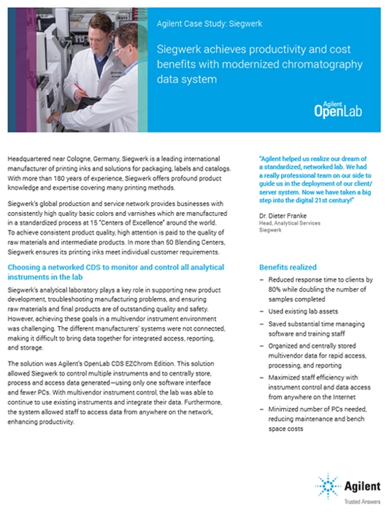 DownloadA networked CDS allowed Siegwerk to centrally store, process, and access data generated—using only one software interface and fewer PCs.