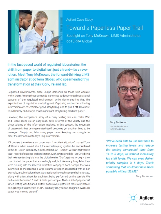 Get in touchdoTERRA Global implements Agilent SLIMS to shift from paper to digital record keeping, reducing testing turnaround from 14 to 8 days without increasing lab staff.