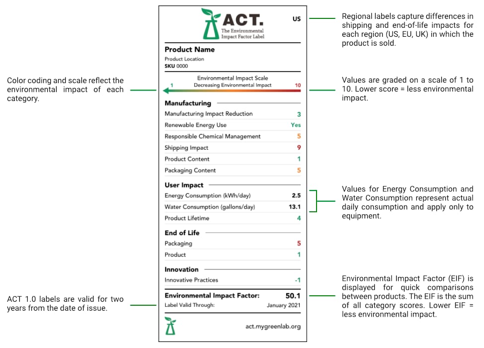 Expanding on the success of the current ACT Environmental Impact Factor (EIF) 1.0 label, My Green Lab has now released a new ACT Ecolabel 2.0 with an enhanced scoring framework to effectively communicate a wider range of sustainability attributes to end users.