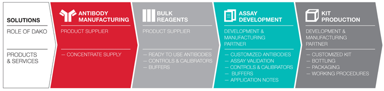 IVD companies choose to engage with external partners for many different reasons. Based on more than 40 years in the business of producing antibodies, Dako knows what our industry partners expect of a supplier of antibody reagents and solutions.
