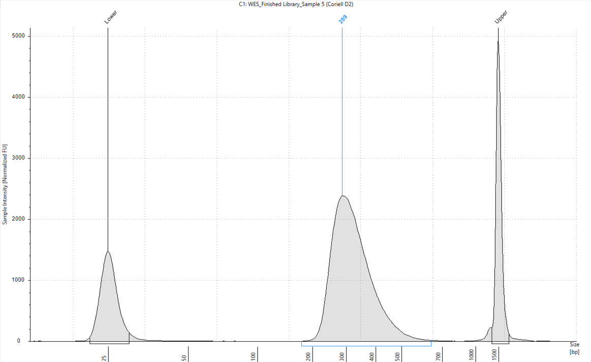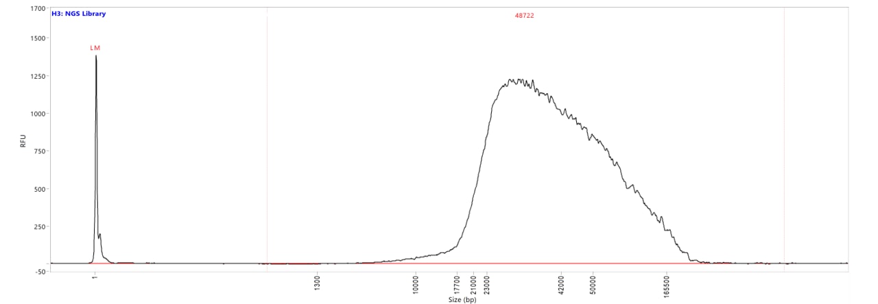 The Agilent Automated Electrophoresis instruments help ensure successful sequencing with confident quantification, qualification, and sizing of short-read NGS library smears. For example: