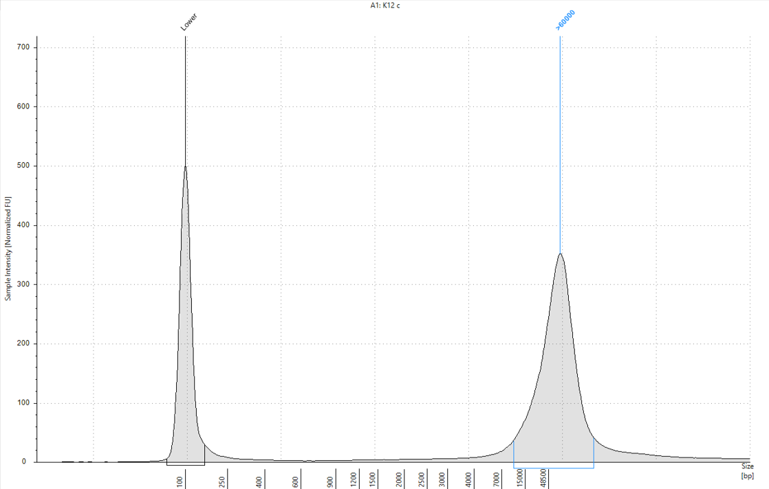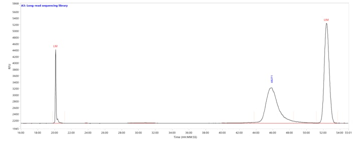 Long-read sequencing library separated using the HS Large Fragment 50 kb kit. Capillary electrophoresis was performed on a Fragment Analyzer equipped with a short capillary array, 33 cm.