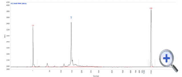Small RNAs are involved in many important biological processes, notably gene expression. Small RNA sequencing provides researchers with further insight into these processes. Sequencing libraries made from small RNA present novel QC challenges due to the small smear size and narrow smear range.