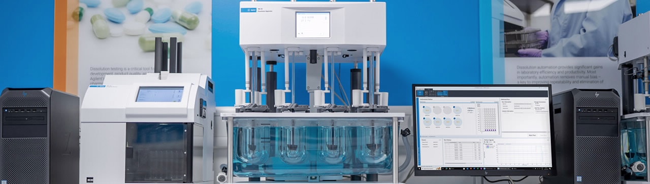 Agilent dissolution software systems enable more effective management and analysis of dissolution data, while ensuring ongoing regulatory compliance. Our dissolution testing data systems integrate analysis and sampling, while providing real-time access to test statuses and simultaneous control of multiple systems.
