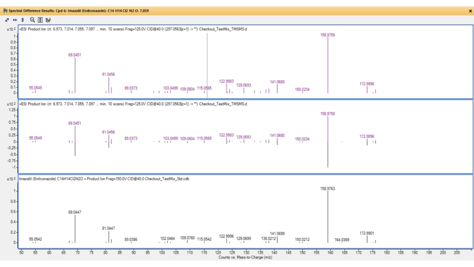 In practice, a library match score is calculated between the acquired spectrum and library spectrum, giving an indication of how well the two match (the higher the score, the more confident the match). Library matching aids in unknown identification and lends confidence to the compound identification process. You can screen for several thousand targets, such as pesticides, with a single run on a TOF or Q-TOF LC/MS instrument and accompanying spectral library.