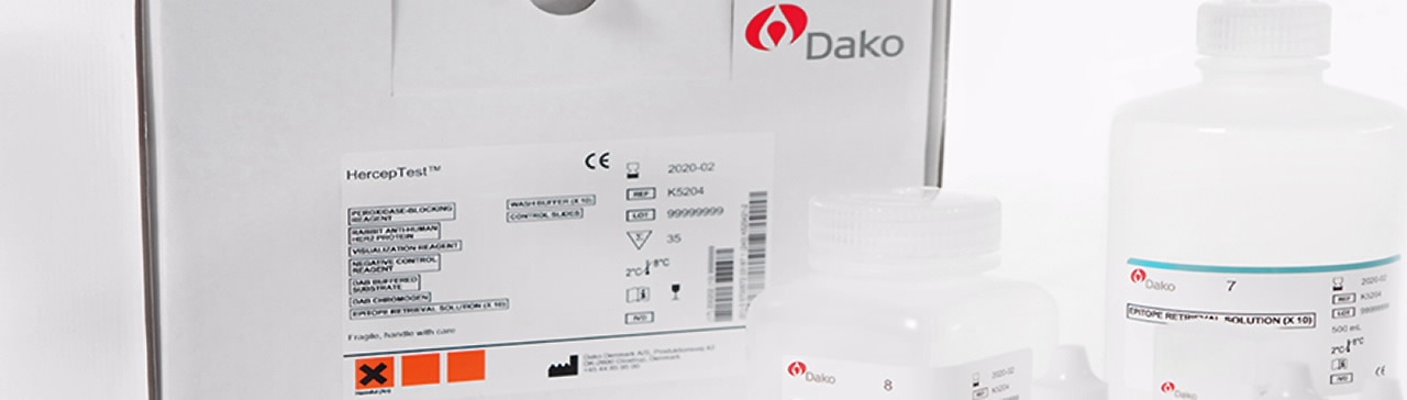 Overexpression of HER2 protein has been described in some cancer types. HER2 protein is a target for HER2-specific treatments. HercepTest™ pharmDx kits are available for immunohistochemical determination of HER2 protein overexpression using Dako Omnis, Automated Link Platforms, Dako Autostainer or manually. Please see product details for validated tumor indications and intended use.