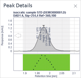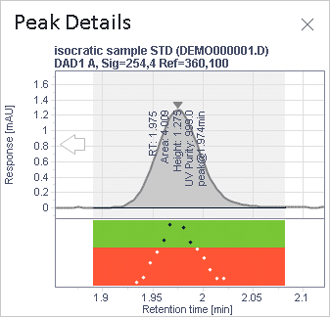 Quickly assess peak parameters, whether a peak is pure or contains multiple compounds.